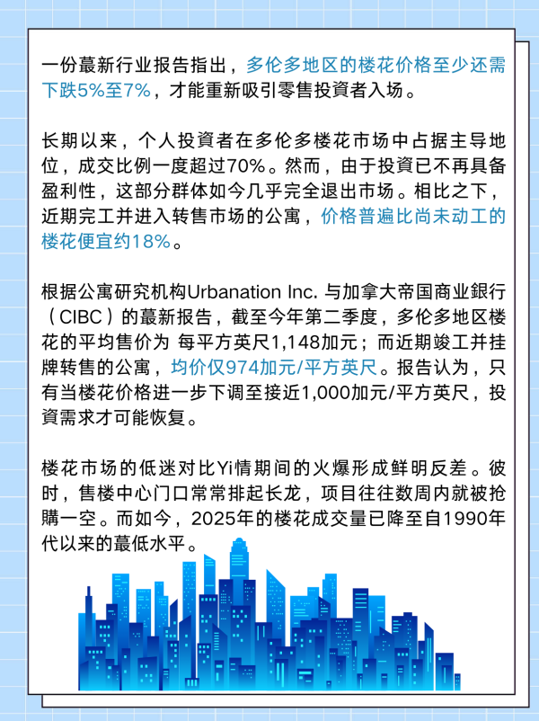 多伦多楼花价格价格或需再跌7%才能重启市场