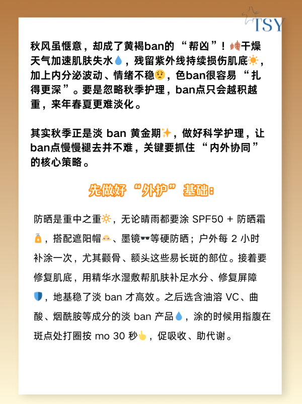 秋季淡斑抓 2 点,防晒 + 内调是关键